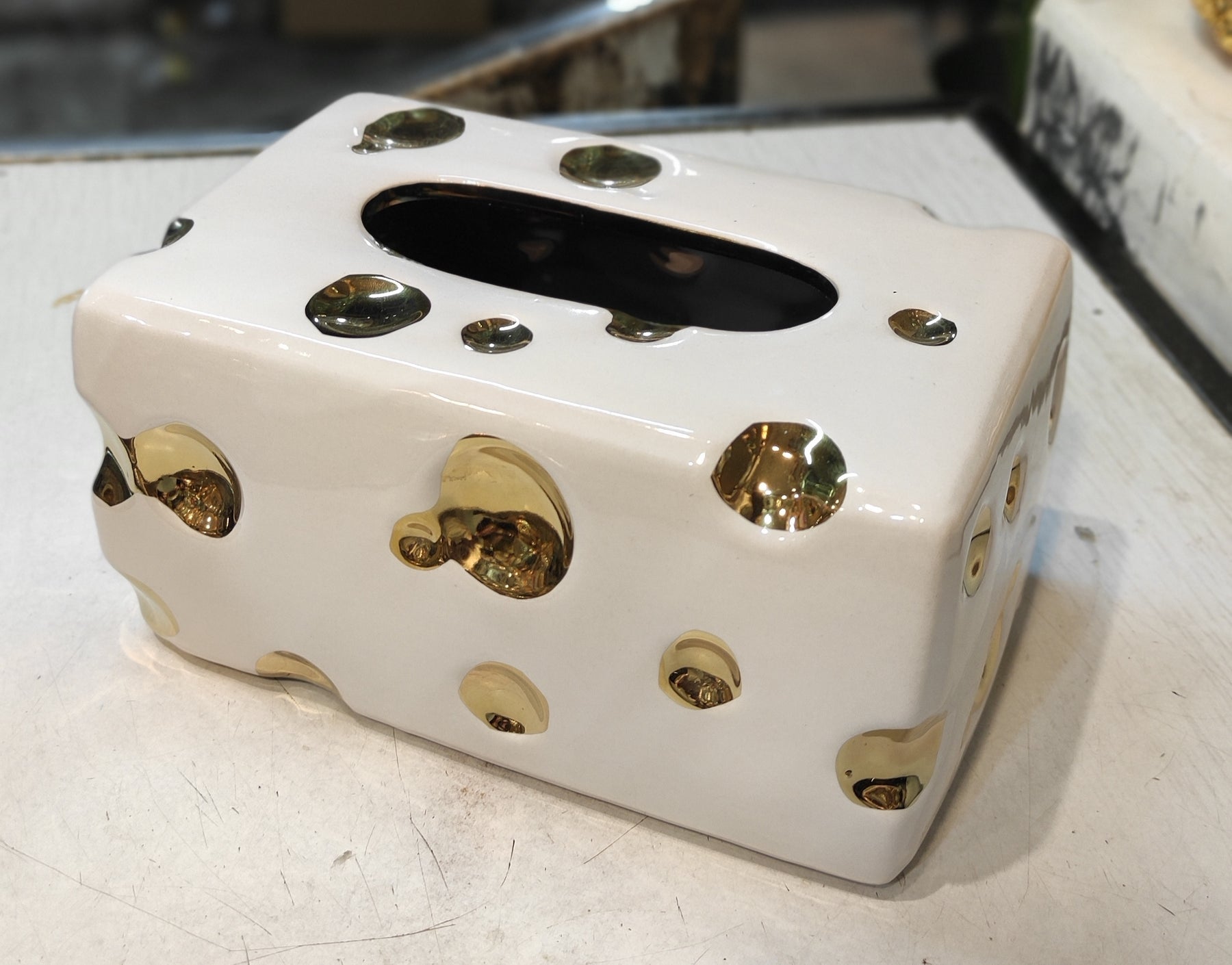 Add a touch of modern elegance to your home with this luxury black and gold tissue box cover. Its unique bubble design and glossy finish make it a stylish centerpiece for any living room, bedroom, or office. Perfect for keeping tissues handy while elevating your dΓ©cor.
